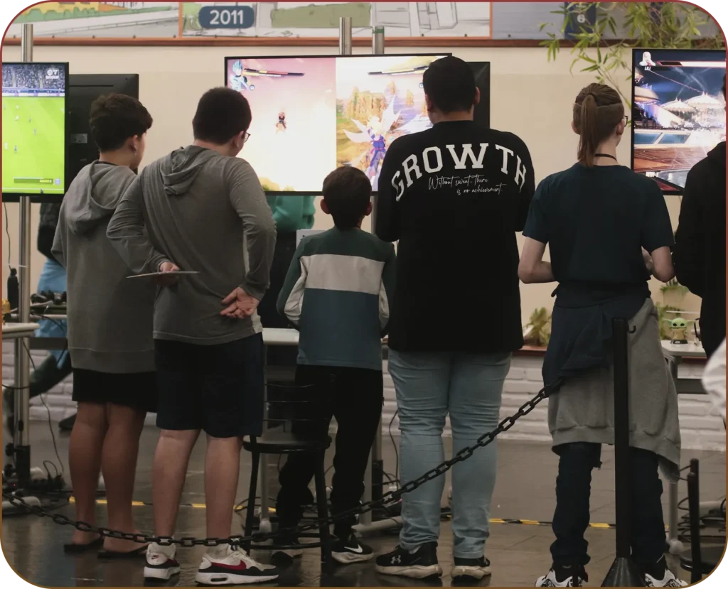 Montamos a arena gamer dentro do colégio, com palco, equipamentos e espaço para palestras. Nossa equipe garante segurança, organização e suporte pedagógico.